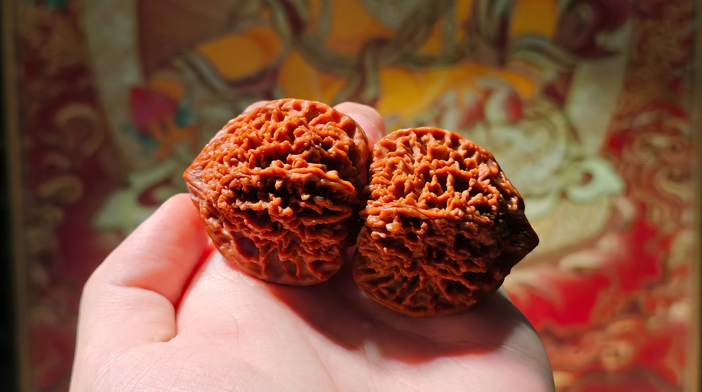 Wenwan Walnuts are not just collectibles; they are living gems. As you handle them, the natural oils from your hands interact with the shell. Over months and years, they transform from a raw brown to a translucent, agate-red color. This process is called 'Patina'—a visual record of your patience and peace.