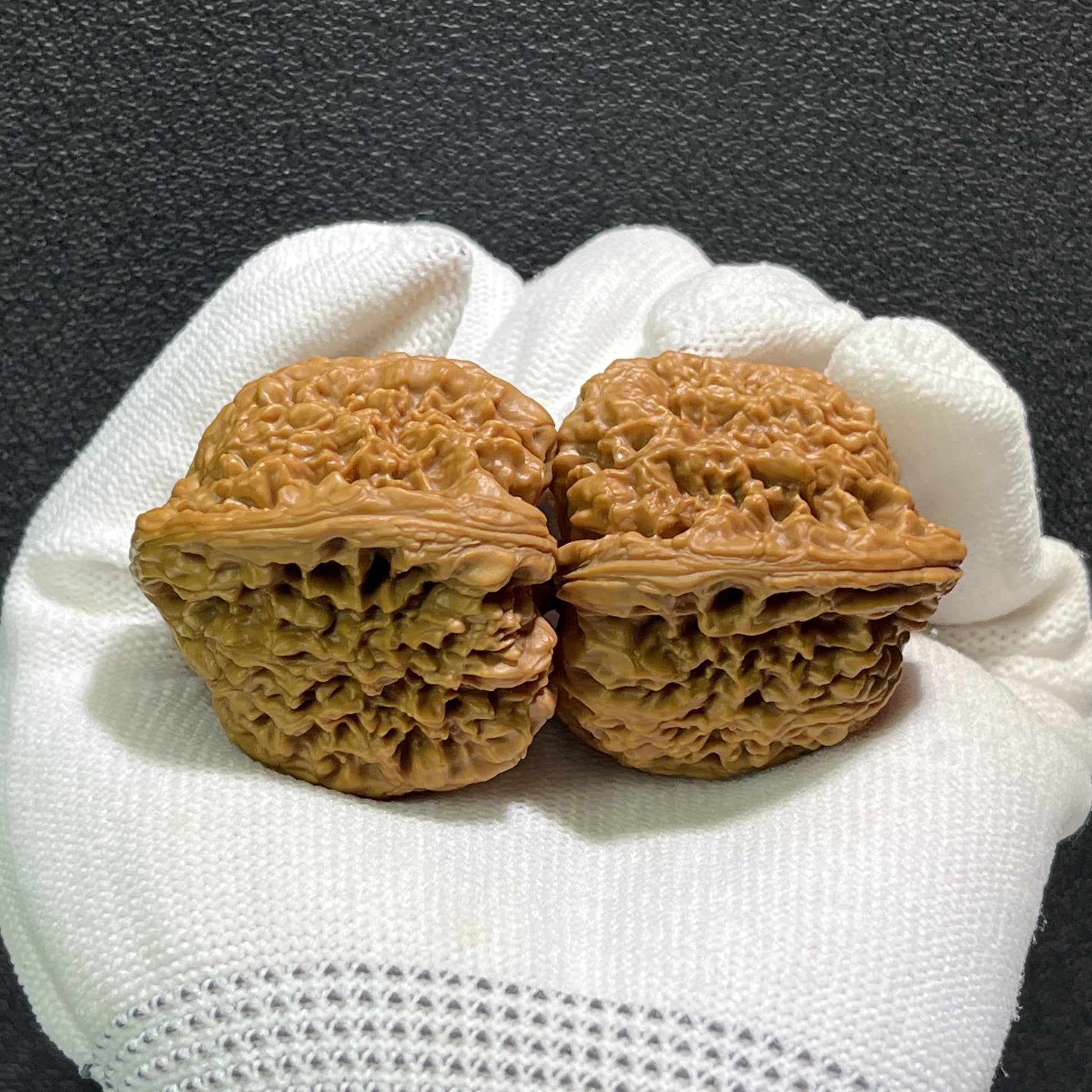 The Nan Jiang Shi is widely celebrated as one of the classic "Four Famous Walnuts" in the Wenwan community. It is renowned for its incredibly dense, rock-hard shell and distinctive rugged features. Because of its extreme density, this variety requires patience and consistent daily play to develop its patina. The reward for this dedication is a brilliant, glass-like finish that outshines many other varieties over time.