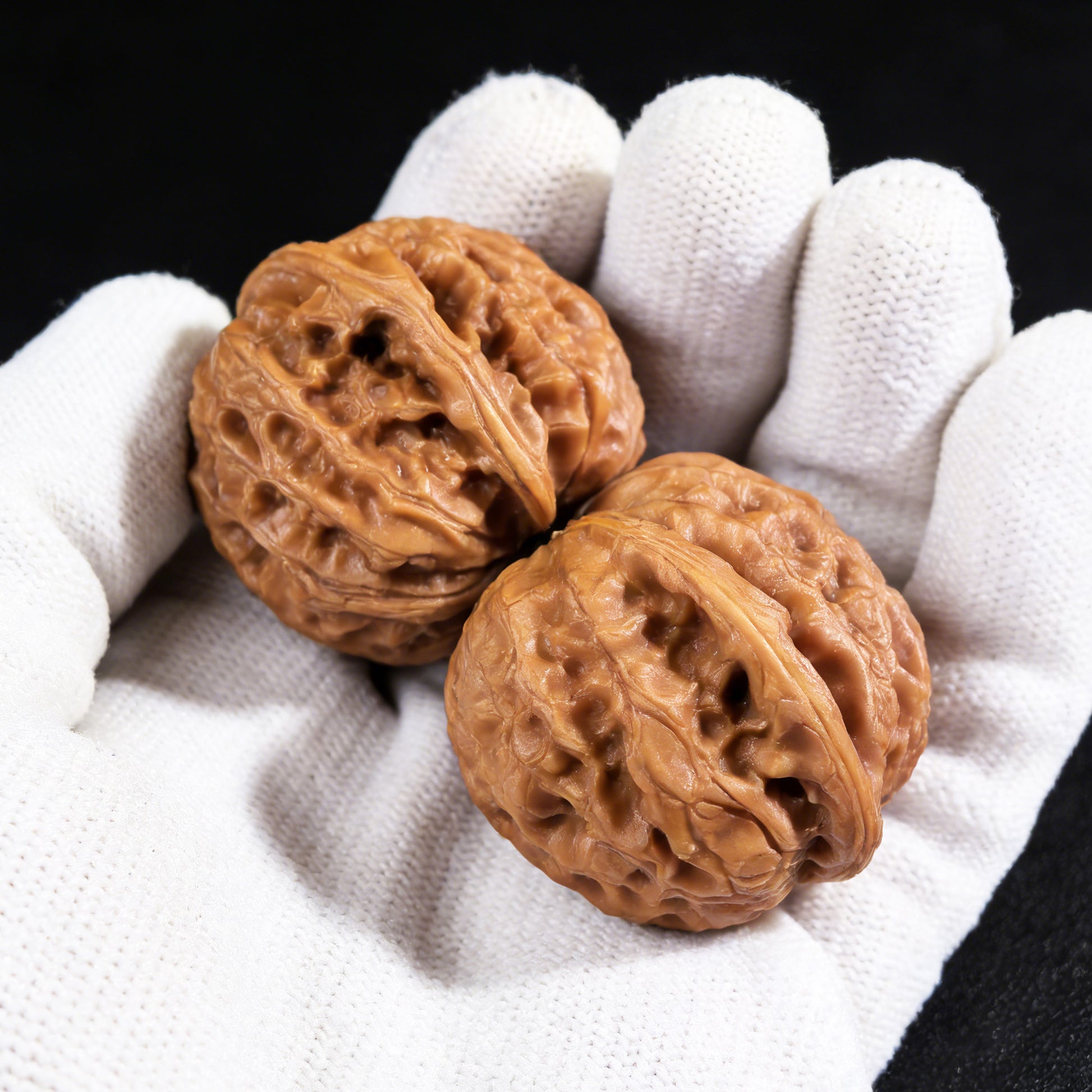 Playing with a pair of "Long Dan" walnuts is a high-intensity tactile experience. Unlike varieties with smooth or uniform lines, the Long Dan features thick, knobby, and disconnected ridges. This wild topography provides an exceptional, high-friction grip and delivers a rigorous, deep-tissue massage to the hand's acupoints. It is highly sought after by collectors who crave intense sensory feedback and a truly rugged, ancient look.