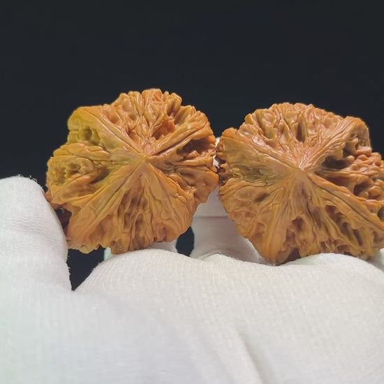 This pair represents the absolute pinnacle of Wenwan rarity. The "Jiu Long Jin," translating to "Nine Dragons Ridge," is already famous for its thick, aggressively protruding veins that resemble the writhing tendons of mythological dragons. However, what elevates this set into the highest echelon of collecting is the "Quad-Ridge" (Four-Edge) natural mutation. While standard walnuts possess only two edges, a perfect four-edge mutation is an extraordinary anomaly of nature, symbolizing ultimate fortune and completeness. Finding one is a rarity; matching two identical quad-ridge shells is a true miracle of sorting.